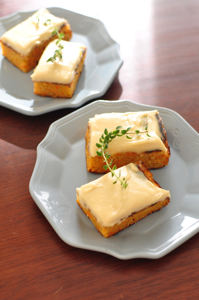 気軽に手作りおやつ→卵焼き器で作る キャロットホットケーキとお揚げと豚と春菊の巻き巻きで晩ごはん